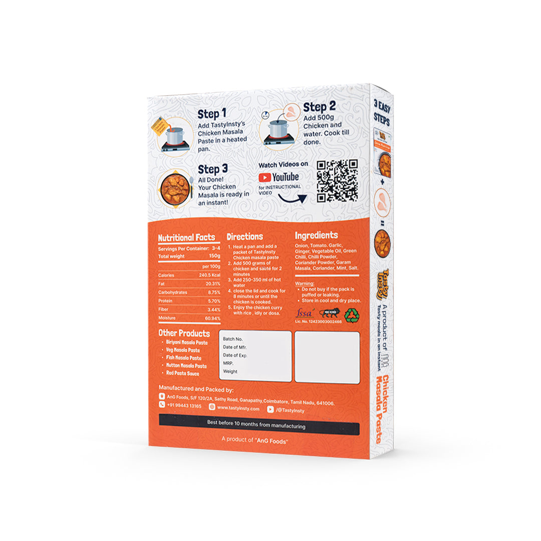 Tasty Insty’s Chicken Masala Paste takes the guesswork out of cooking — delivering deep, authentic flavour with zero prep. Whether you're craving a classic chicken curry or something spicier, this ready-to-cook paste helps you get it right every time.